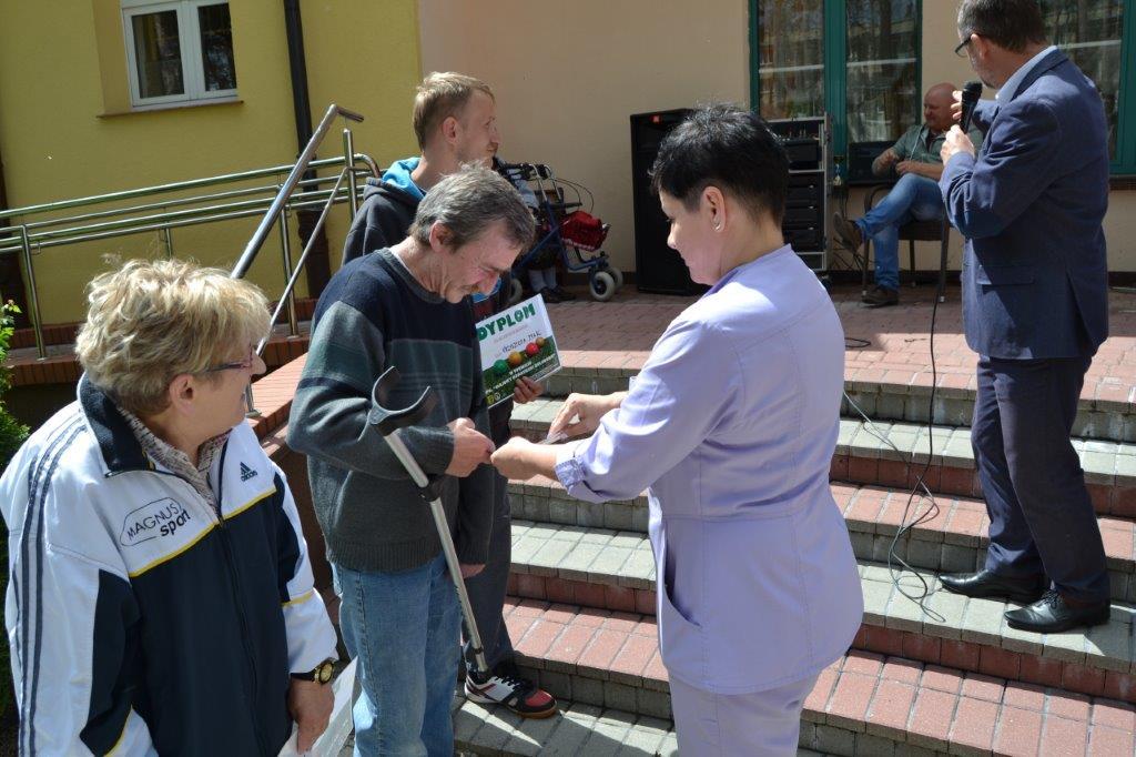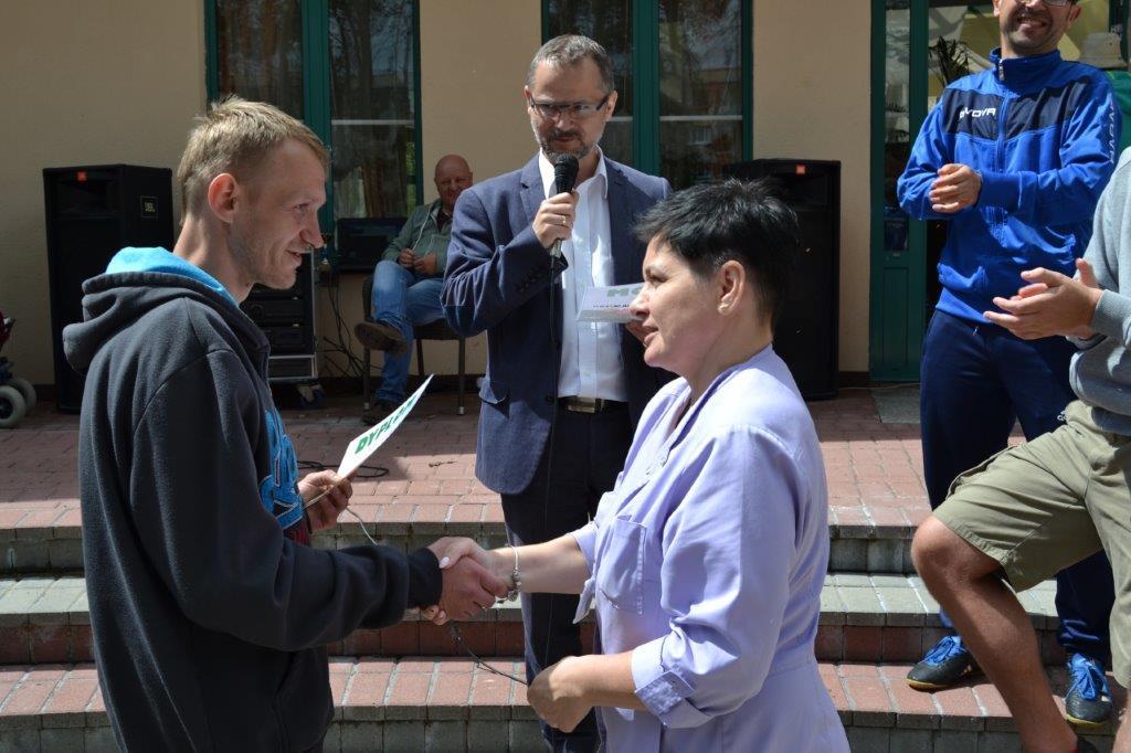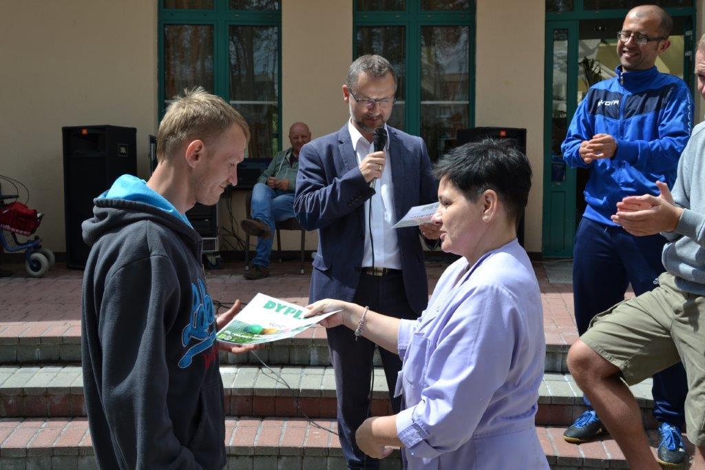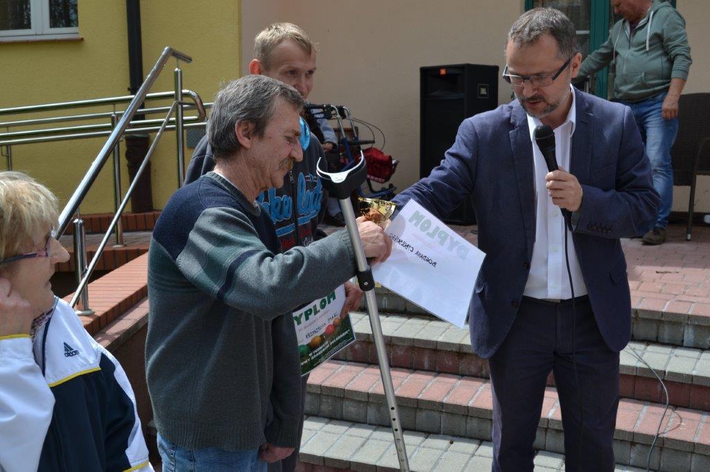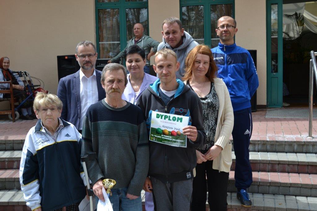 Pani Dorota Załoga – Martysz (prezes Stowarzyszenia) przekazała zwycięzcom okolicznościowe dyplomy, natomiast zastępca dyrektora DPS Pan Tomasz Kapuściński wręczył mistrzowi okazały puchar.